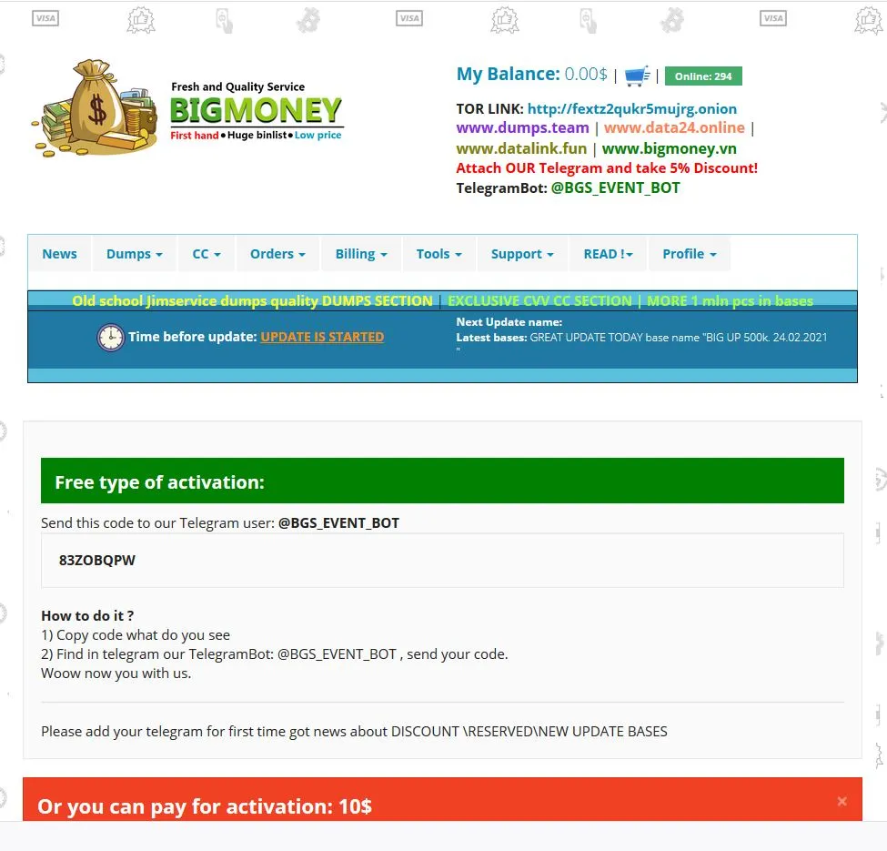 Big Money is a general card shop run by Dumps Team that offers credit cards with CVV info as well as dumps and packs (“bulk packages”). Additionally the site comes with some tools such as a cc checker and a BIN lookup. You can find the onion link for the Big Money card shop to the right of this article.
