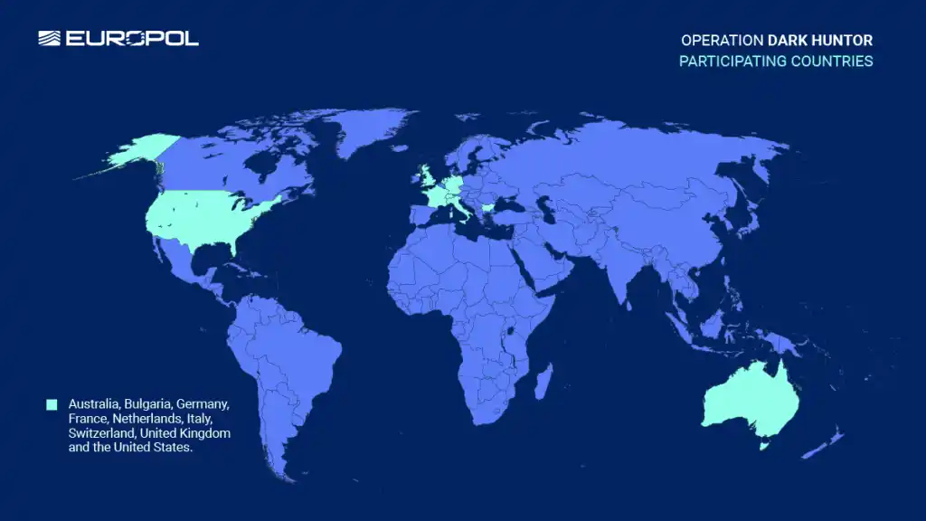 Die Operation Dark HunTOR bestand aus einer Reihe von separaten, aber sich ergänzenden Maßnahmen in Australien, Bulgarien, Frankreich, Deutschland, Italien, den Niederlanden, der Schweiz, dem Vereinigten Königreich und den Vereinigten Staaten, die von Europol und Eurojust koordiniert wurden.