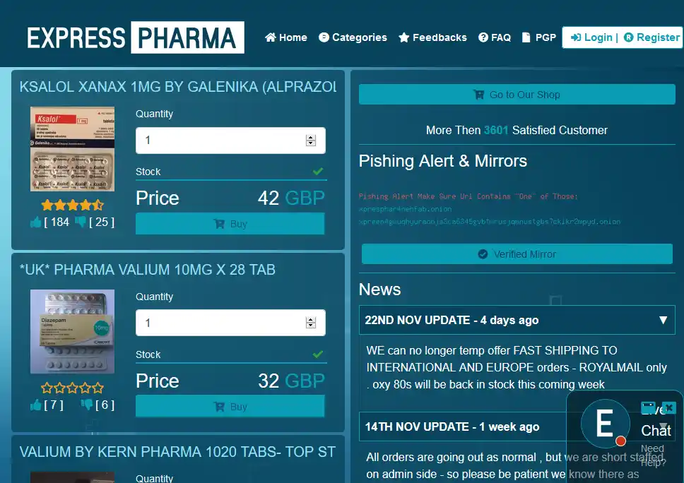 The site has a clean and easy to navigate layout, it should be no problem for anyone to browse through the vendor market. Express Pharma emphasizes that you should employ encryption when submitting sensitive information such as your address for delivery. The public PGP key is available on the website so make sure to use this before submitting your information.