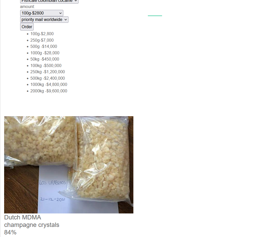 Los Urabenos is a small darknet market that specialized on cocaine. The selection is quite limited but also updated frequently – you should check this site out once in a while to see what is available. While the selection is small, the prices are often unmatched by any competitor.