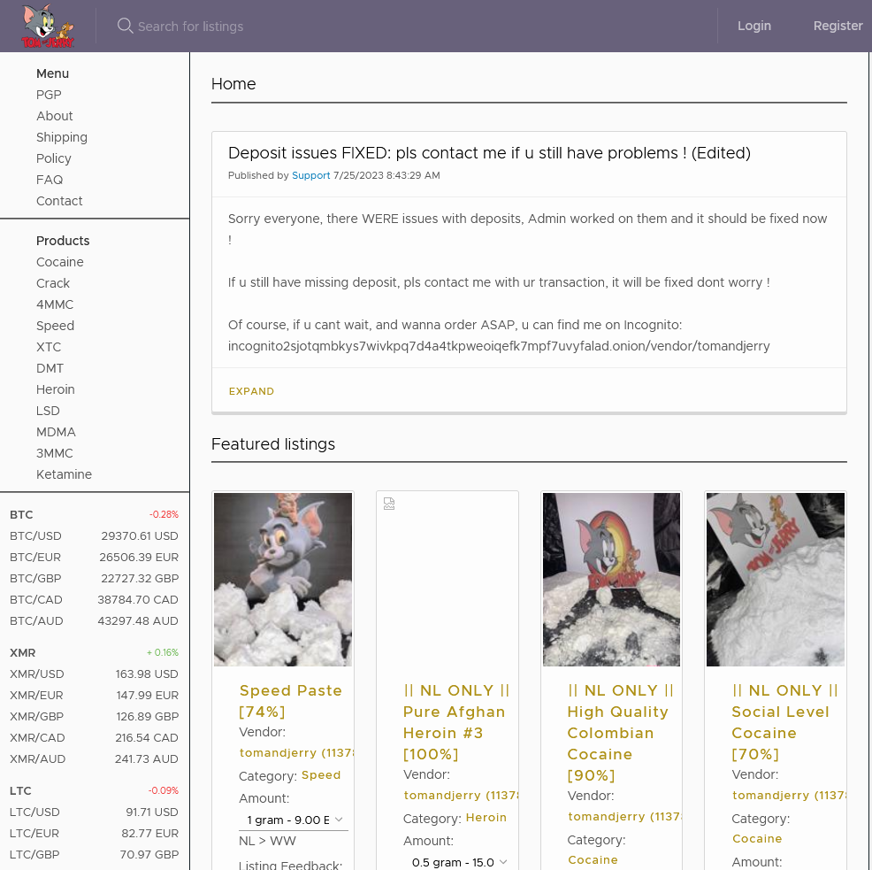 Tom & Jerry is a relatively new vendor shop that specializes on drugs of all kinds. Whether you are interested in cocaine, cannabis or psychadelics, Tom & Jerry is a great shop to check out before you decide to buy anything from the darknet: They are supplied and ship directly from the Netherlands, providing good prices and high quality products.